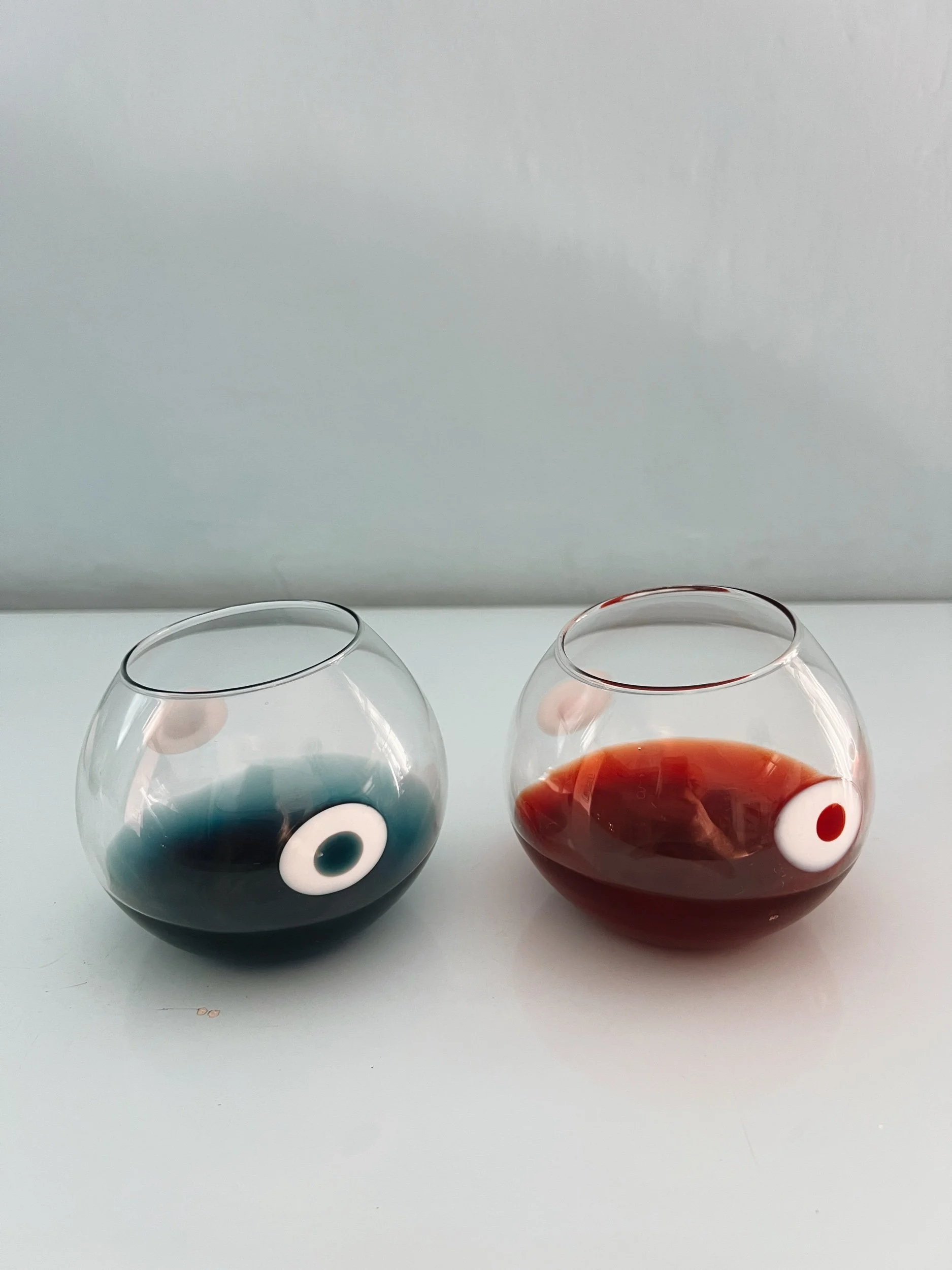 Ideal for entertaining or adding a splash of color to your home decor, this set captures the spirit of 1970s design. Perfect for cocktails, juices, or simply as a beautiful display, these Murano glasses are a delightful addition to any collection.